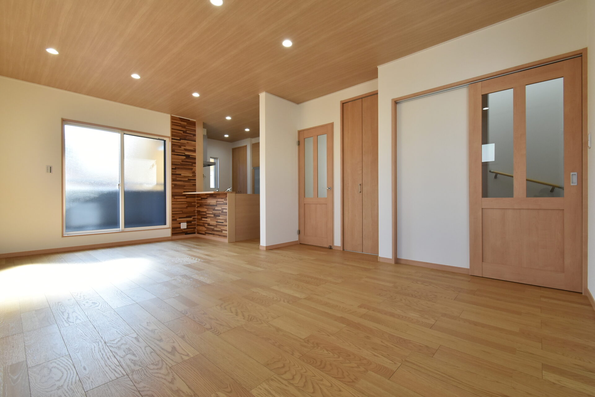 118.82㎡(35.94坪)・4LDK+ランドリールーム+サンルームアストラムライン長楽寺駅 徒歩12分 18.1帖のLDK 下がり天井の照明がお洒落な18.1帖のLDK。窓を開けると、風が優しくそ ...