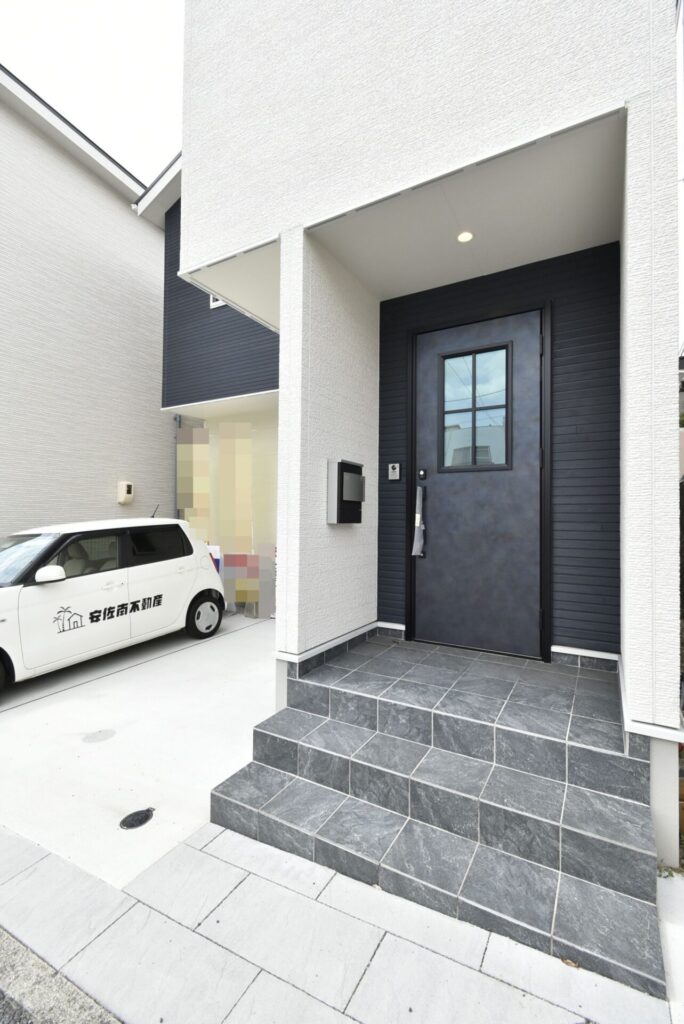 採光窓のあるドアが、スタイリッシュでお洒落な印象。