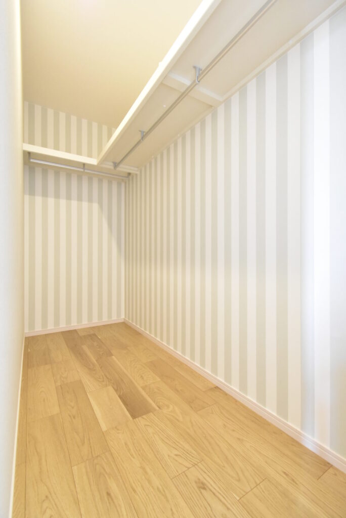 入り口横に、オープンタイプのウォークインクローゼットが備わっていました。