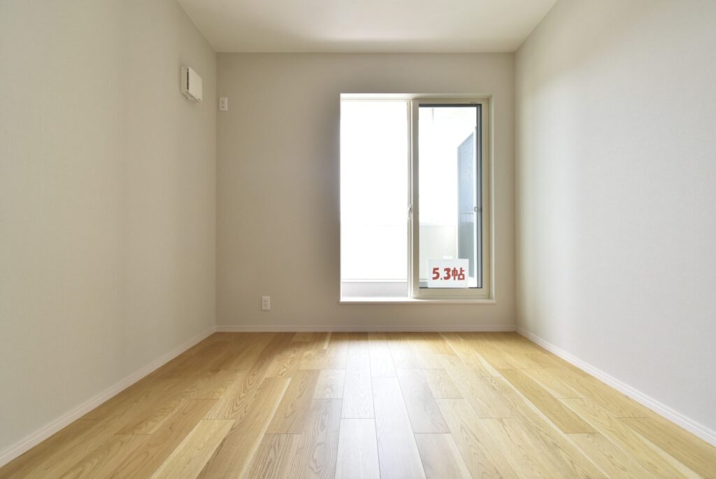 ベッドと机を置けるサイズ感。子ども部屋には十分な広さです。