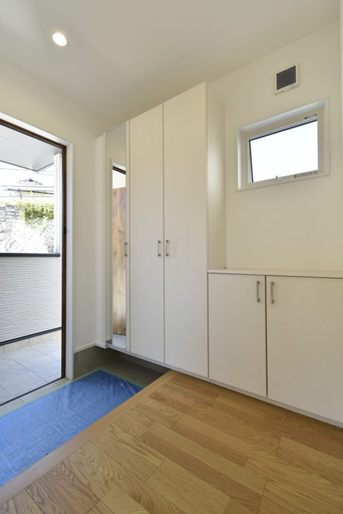 ドアを開けると、白を基調とした明るい玄関がお出迎えしてくれました。