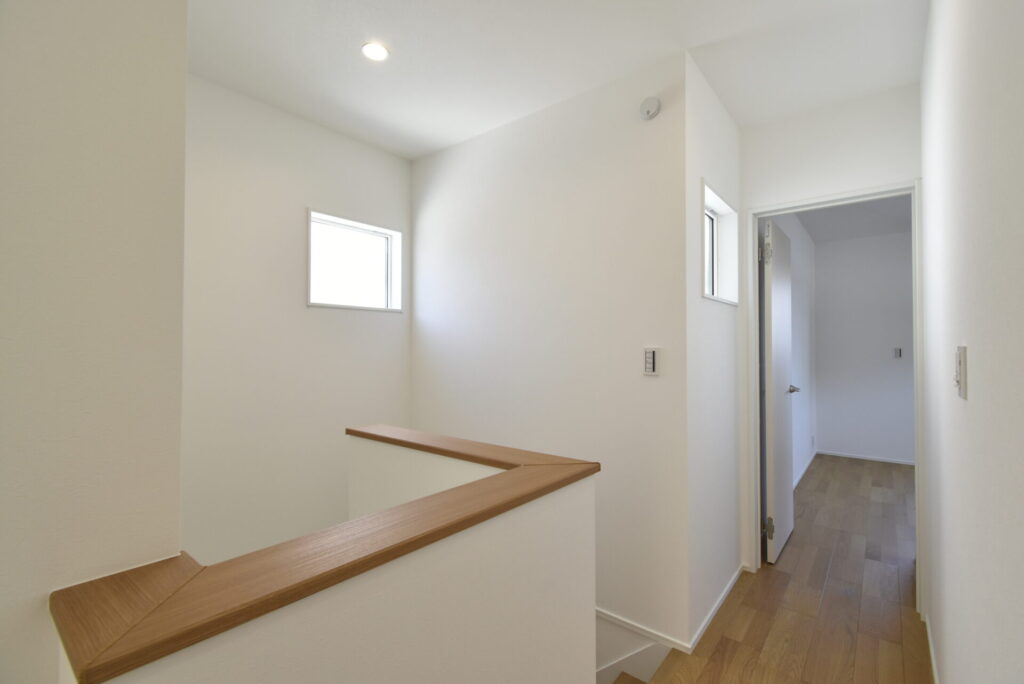 2つの窓から光が入る、明るい2階ホール。右奥の部屋から見ていきましょう。