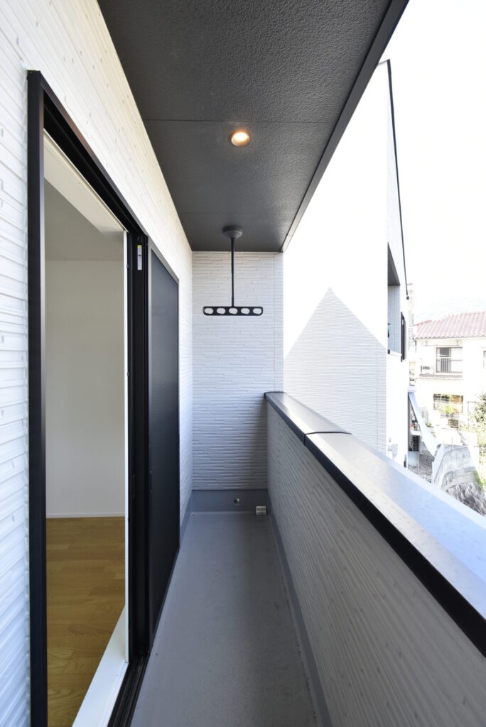 ベランダへ出てみると、風通しが良く、洗濯物も乾きやすそうでした。