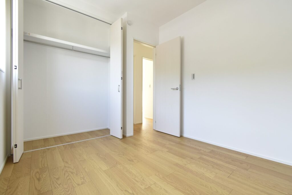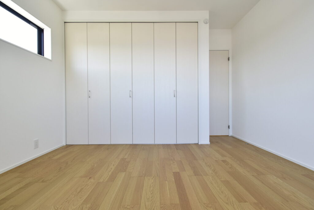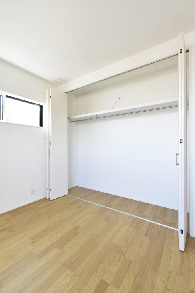 寝室の収納は、3枚折れ戸のワイドなクローゼット。