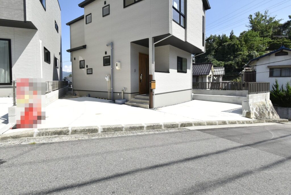 車は2台停められます。道路と敷地の間に段差はありますが、物件の購入が決まった後に段差解消のためのスロープを設置していただけるそうです。