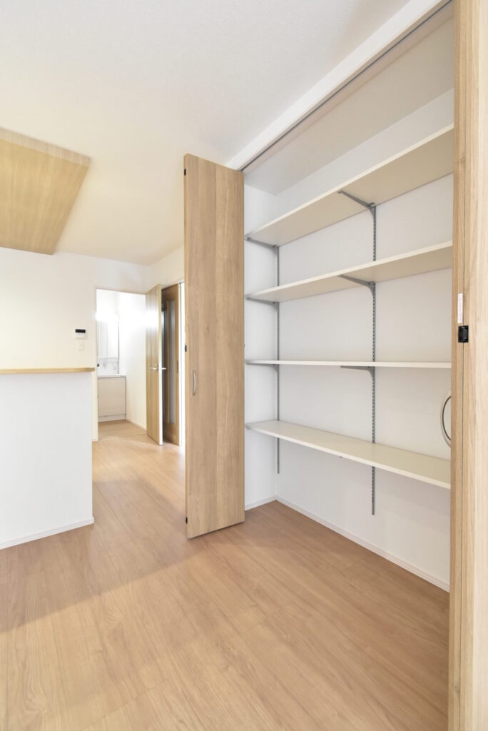 キッチン側の壁に、子どもが書いた絵や家族の写真を飾れば、食卓を明るく彩ってくれそう♪ダイニング横の収納を見てみましょう。