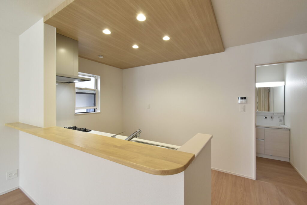 リビングダイニングが見渡せる対面キッチンなので、調理をしながら家族の様子を伺うことができます。