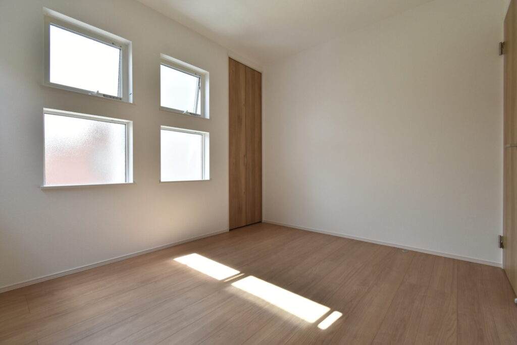 4つの窓から自然光が入り込む、明るいお部屋。