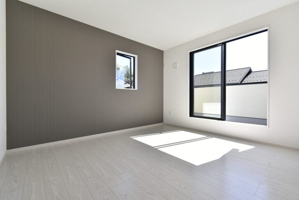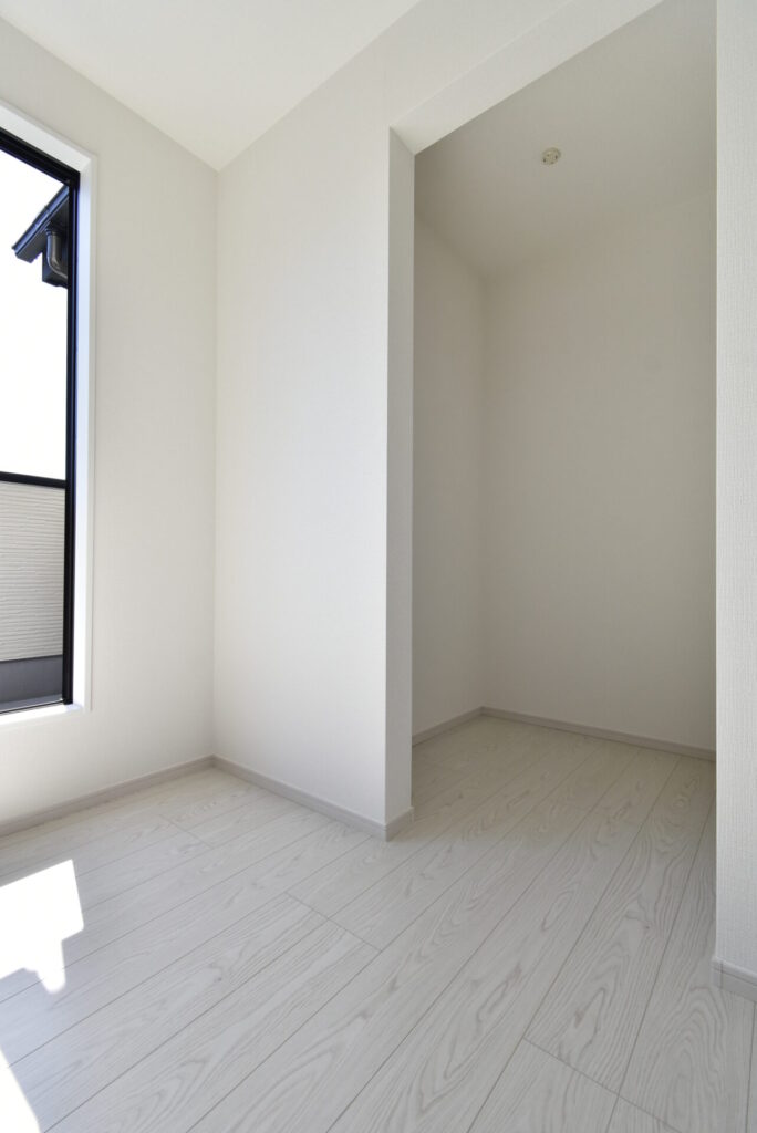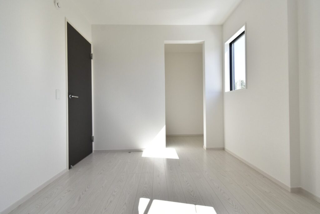 一人部屋として使うには十分な広さの洋室。ベッドや机を置いても空間に余白が残るサイズ感です。