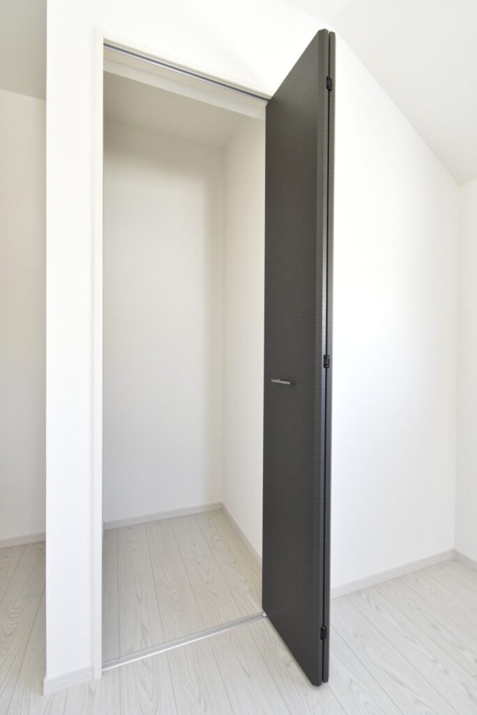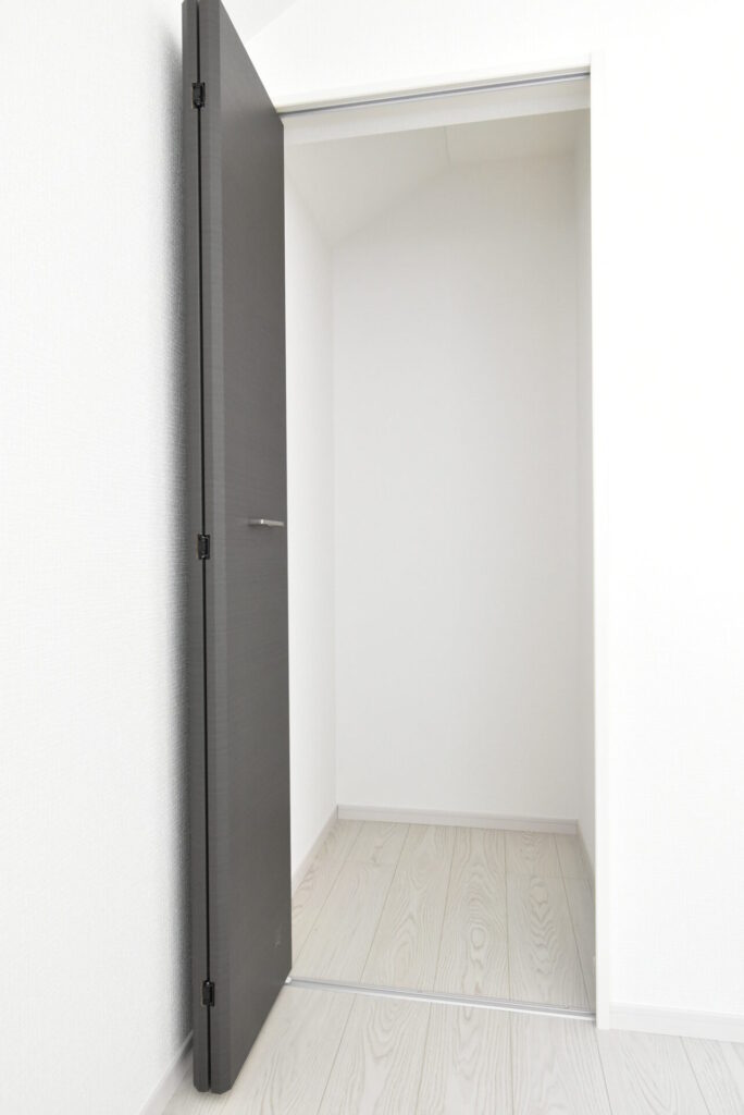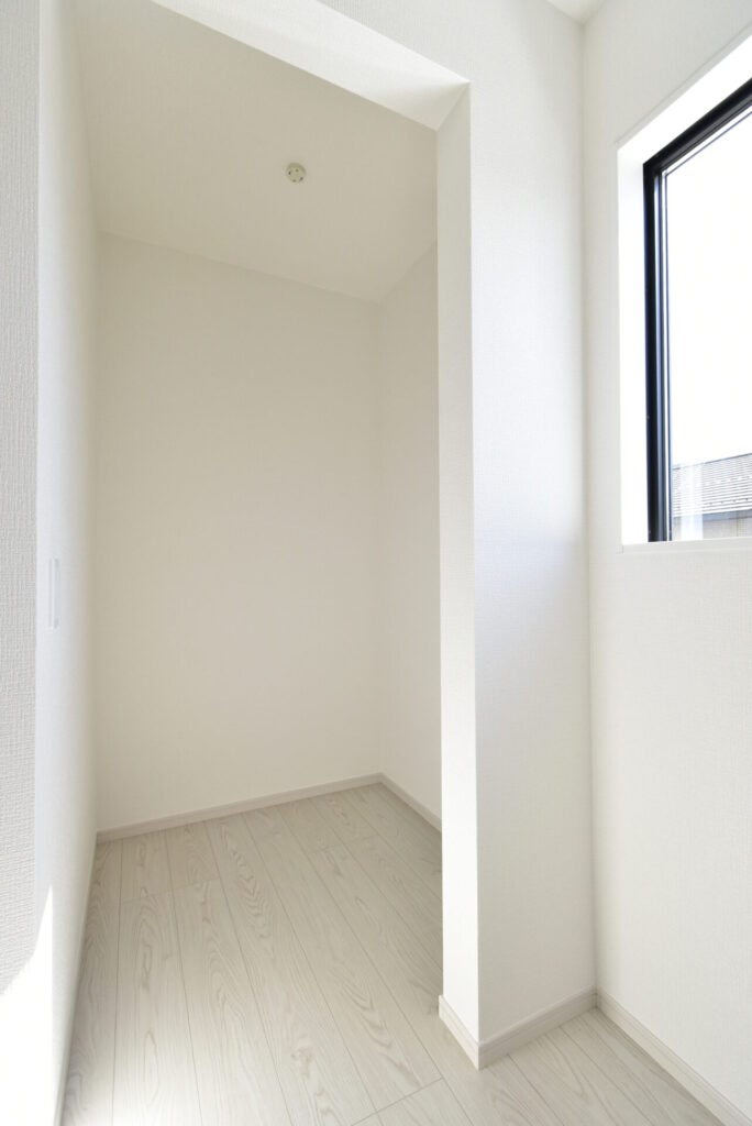 ハンガーポールを設置すれば洋服が収めやすそうな、高さのあるウォークインクローゼットでした。