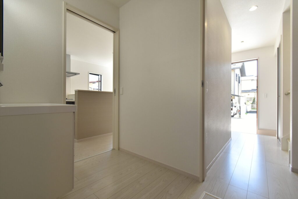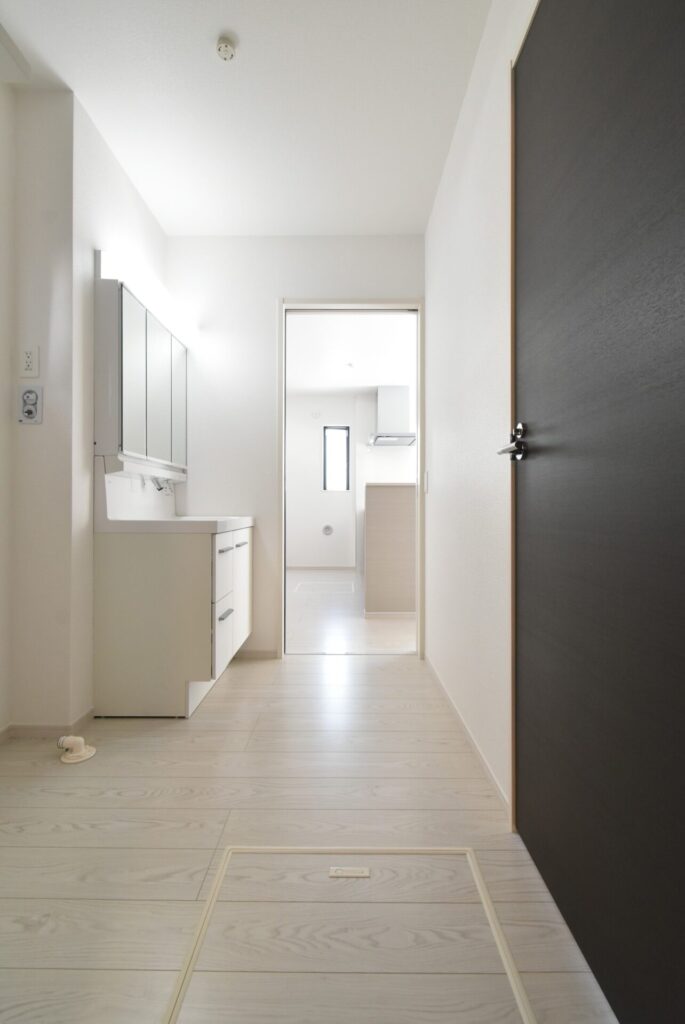 玄関、洗面、LDKをぐるっと回遊できる動線がお目見えです!外出先から帰宅後、この動線を通れば手洗いがスムーズに行えます。