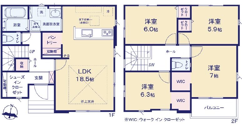 ウォークインクローゼットはオープンタイプ。ハンガーポールなどを設置して、収納力をあげたいですね。