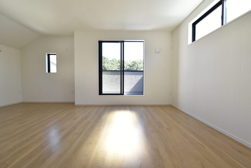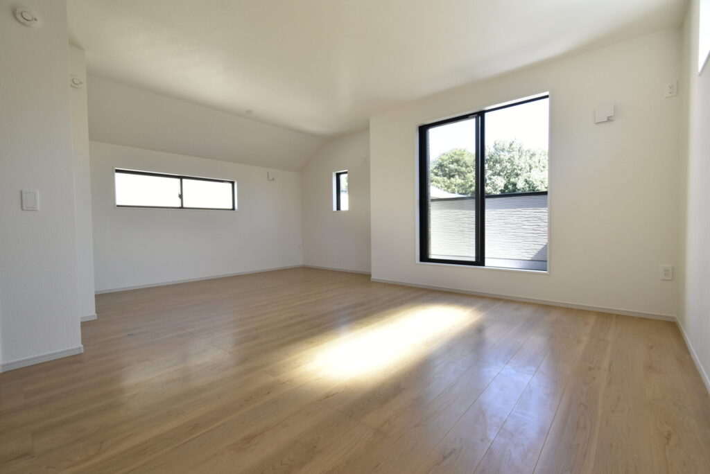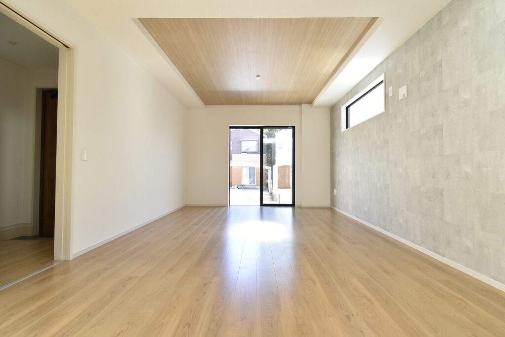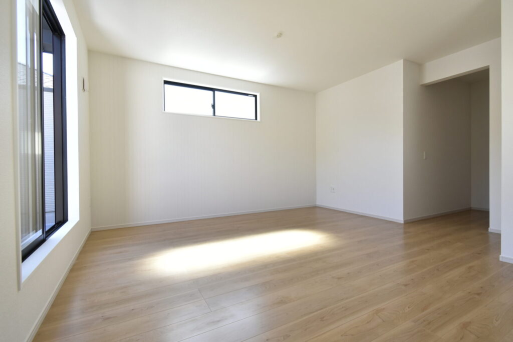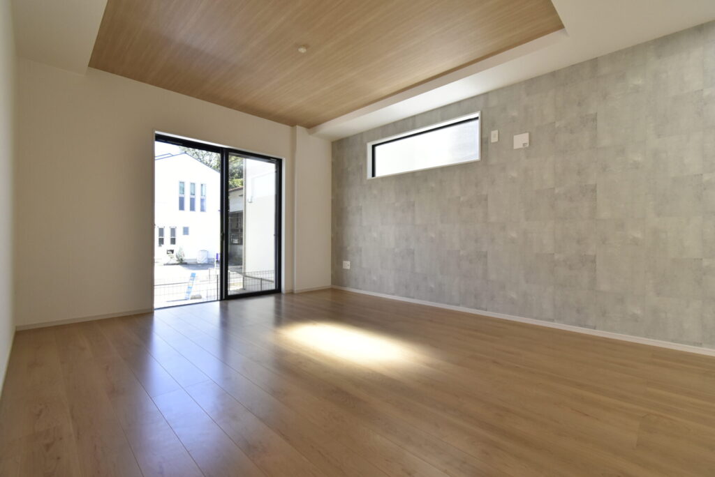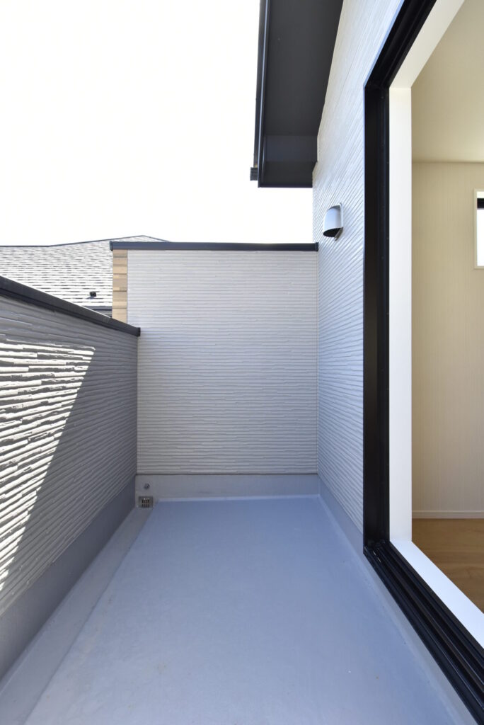 リビング掃き出し窓の外は、少し余白があります。観葉植物・ガーデニングを楽しんだり、ウッドデッキを設置するのもイイかもしれません。家族が楽しめる場になると良いですね。