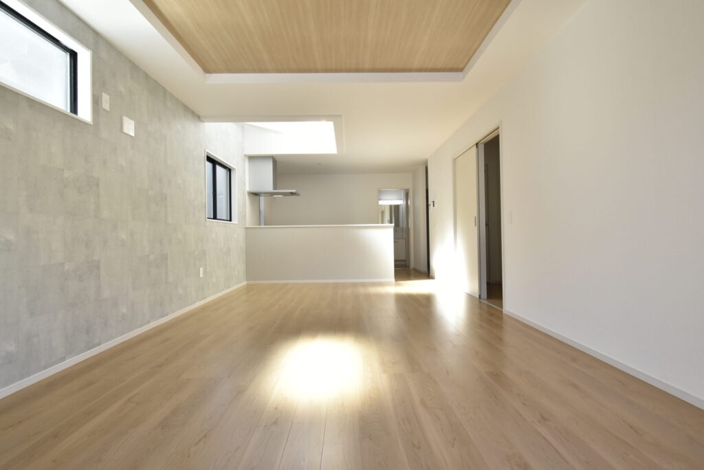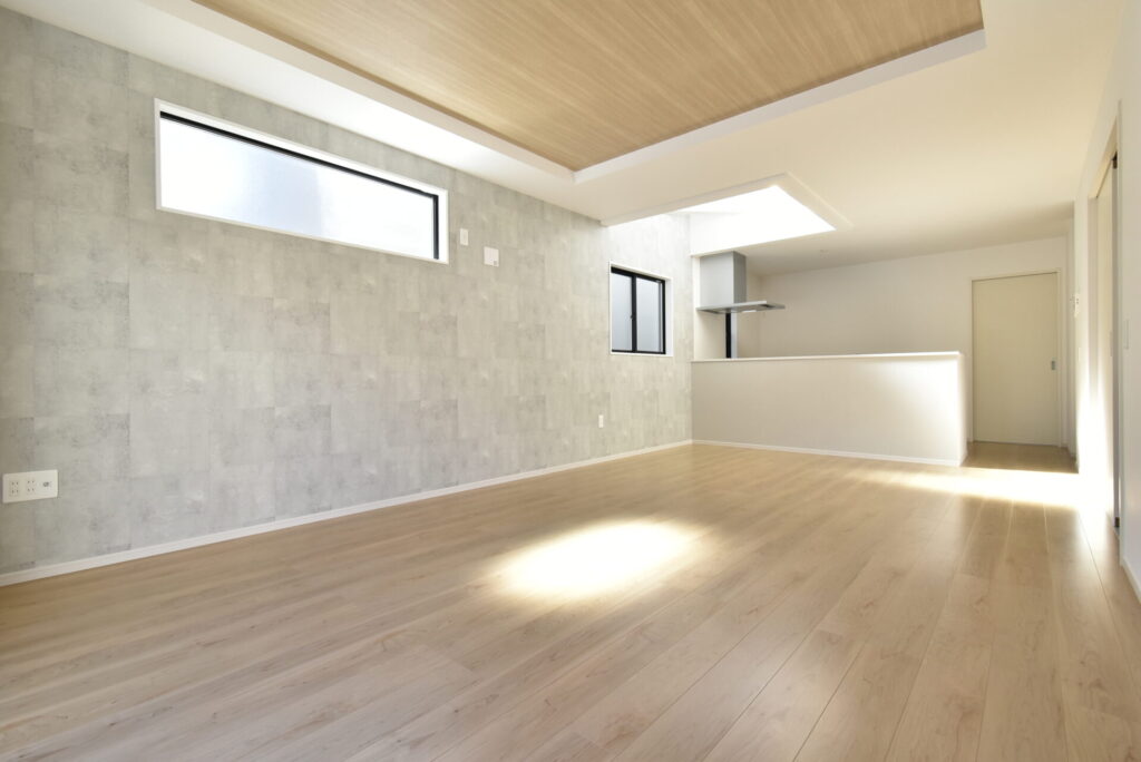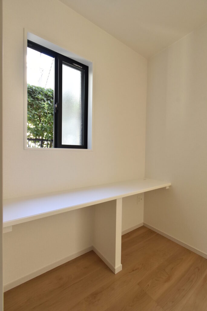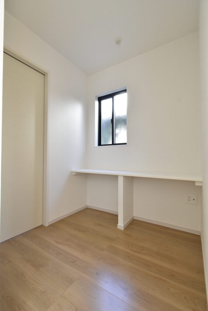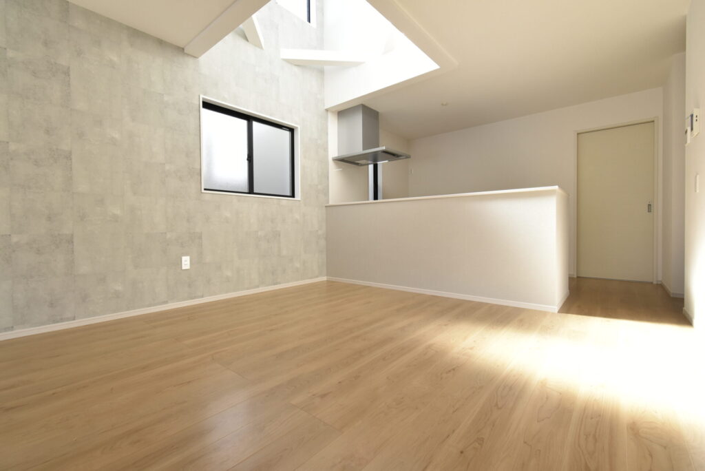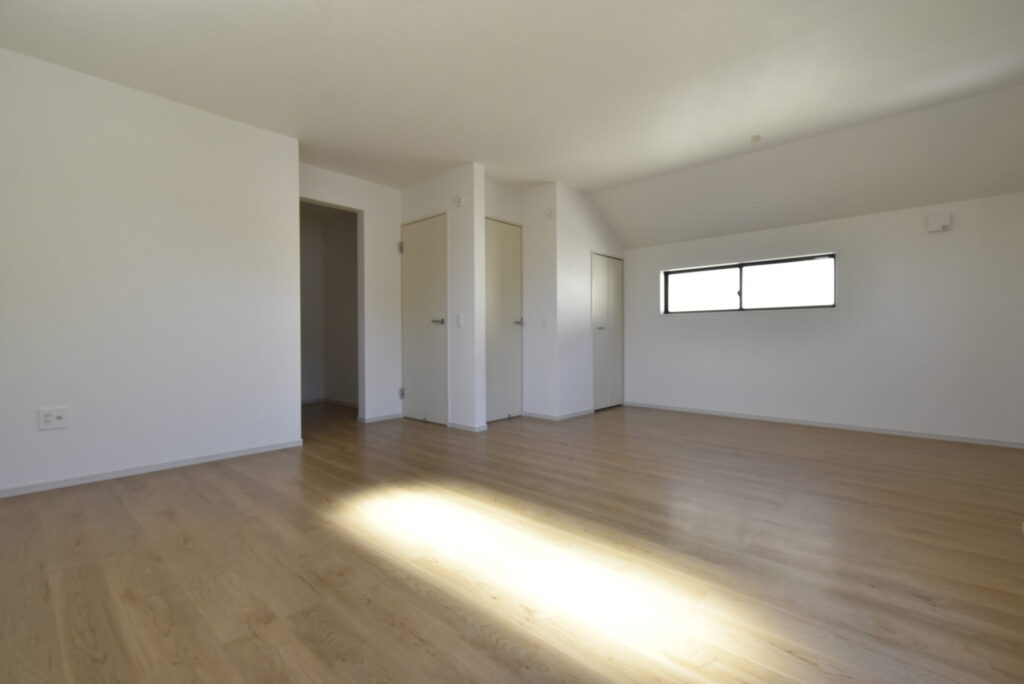 リビング掃き出し窓の外は、少し余白があります。観葉植物・ガーデニングを楽しんだり、ウッドデッキを設置するのもイイかもしれません。家族が楽しめる場になると良いですね。