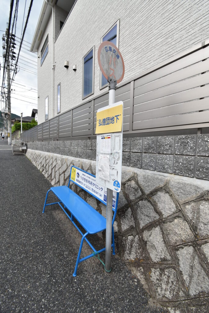 「弘億団地下」に到着です。バスを降り2分歩くと、今回ご紹介する物件が見えてきます。