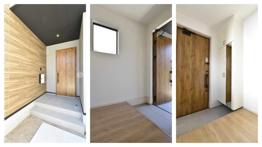 左・白いポストが印象的。/右・姿見付きの靴箱が設置してありました。
