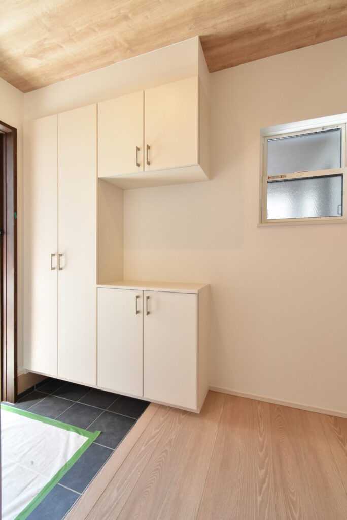玄関には、靴を約45足収納可能なシューズボックスを完備。シューズボックス隣には、こもりがちな玄関の空気を外に逃がしてくれる、換気窓もありましたよ!更に~!!