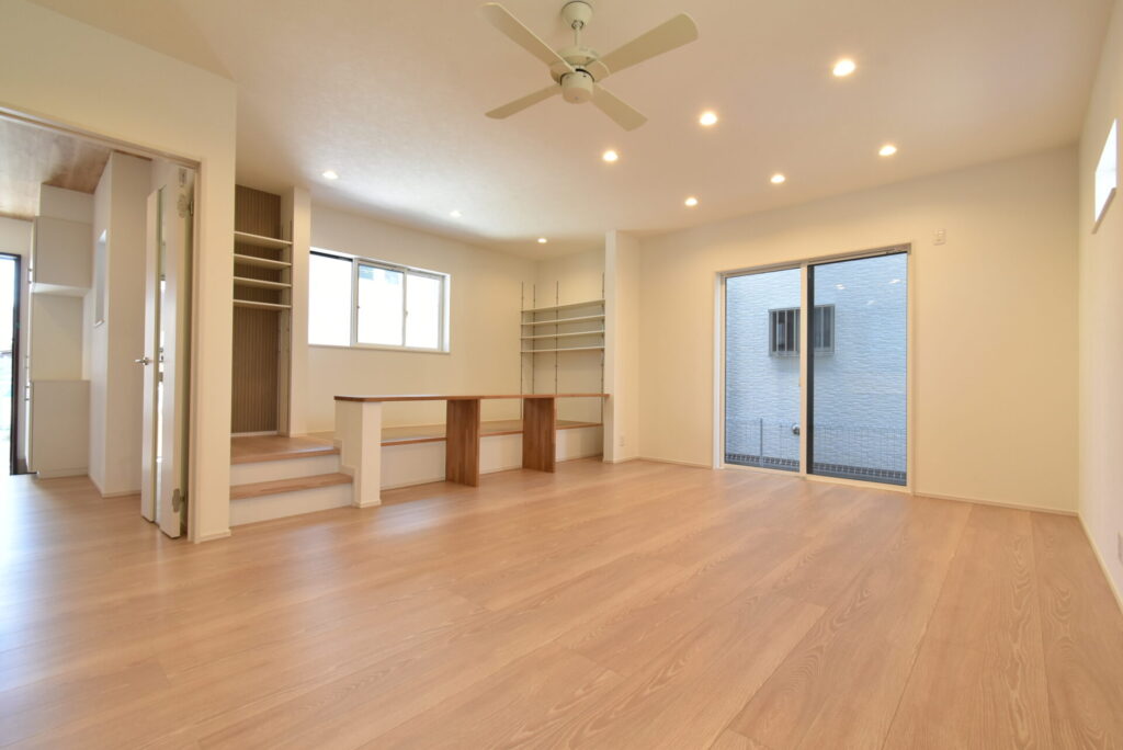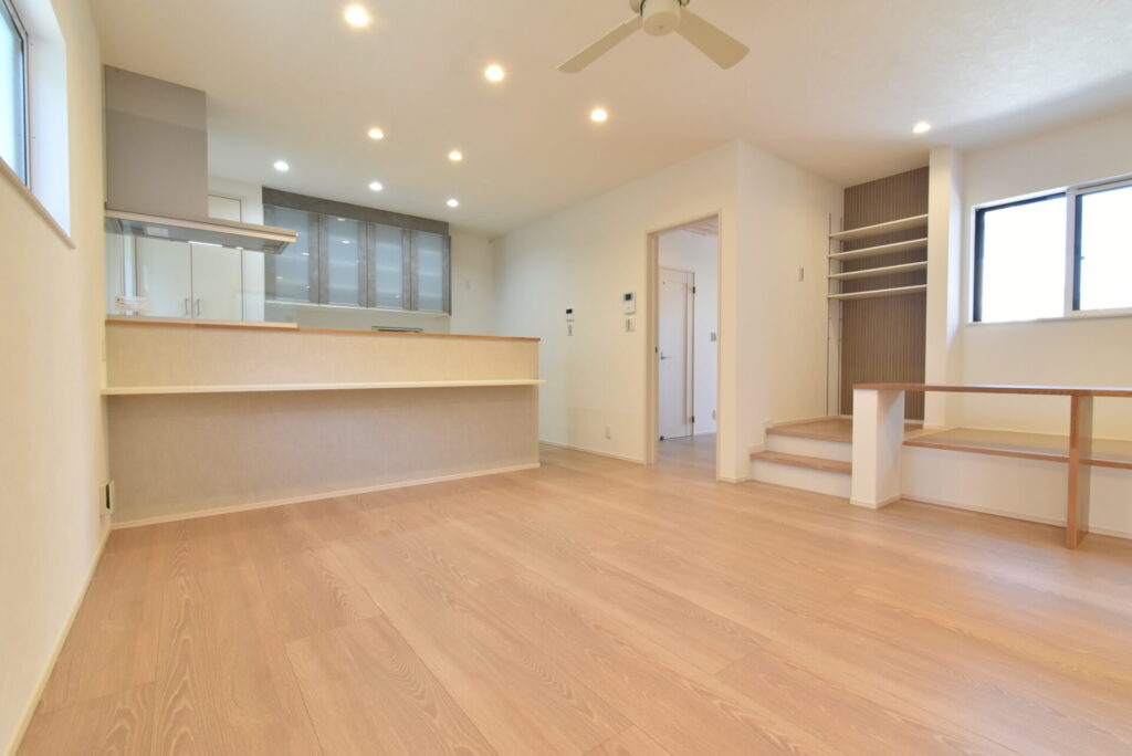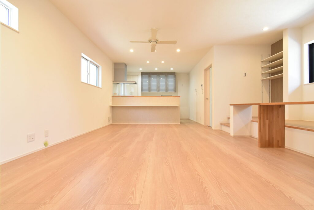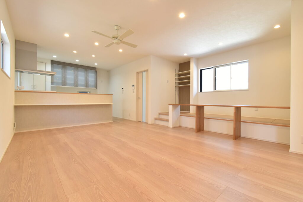 LDKの隣りにはホビースペースがあり、畳数以上の空間の広がりを感じられます。天井には、冷暖房の効きを良くしてくれるシーリングファンが備え付けられていましたよ。