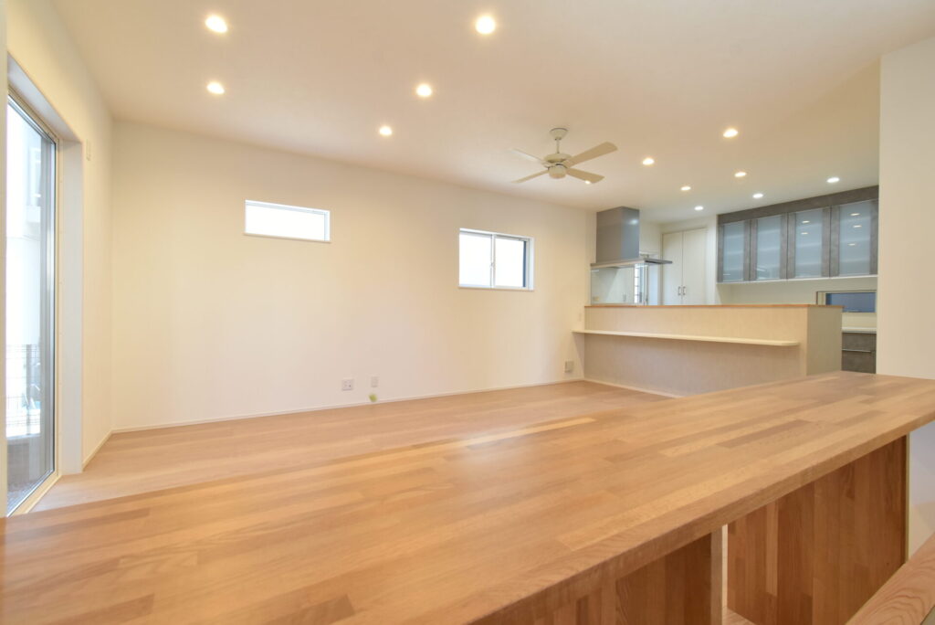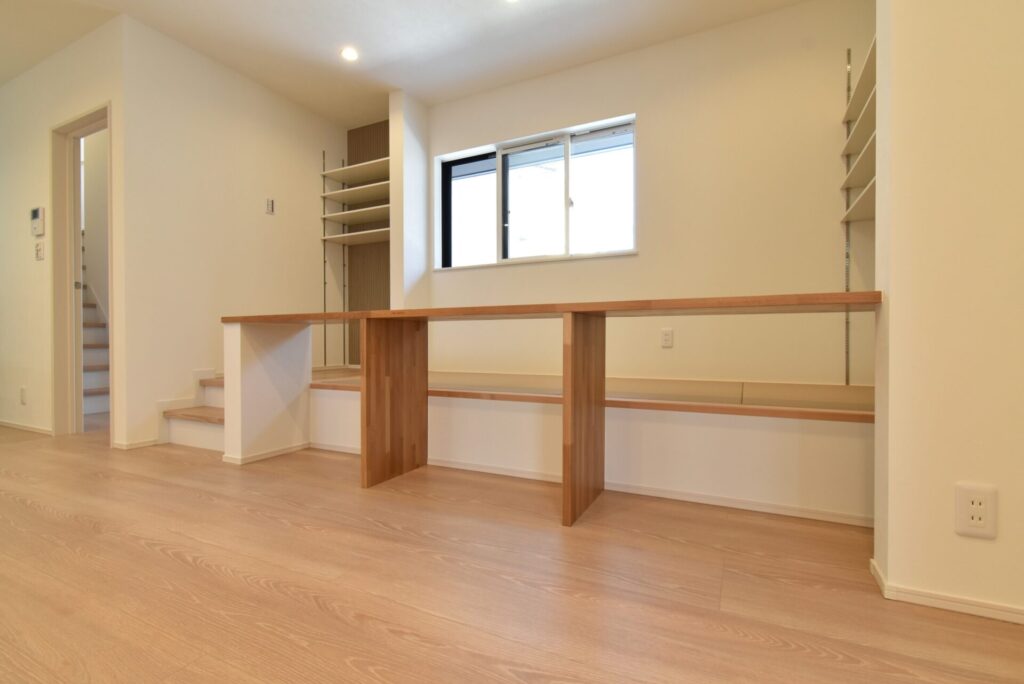 カウンターに足を下ろしてリビング側を向けば、ここからテレビやゲームを楽しむこともできますよ。自分の好きな場所で、家族団らんの時間もひとり時間も楽むことができる、自慢のフロアーとなりそうですね!