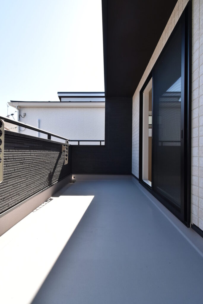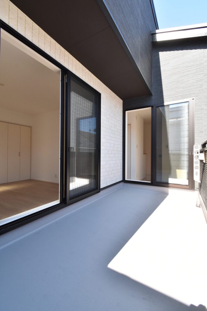 約4帖の広々としたベランダ。ホールとつながっているので、各部屋からもアクセスしやすく、お布団なども干しやすいですよ。