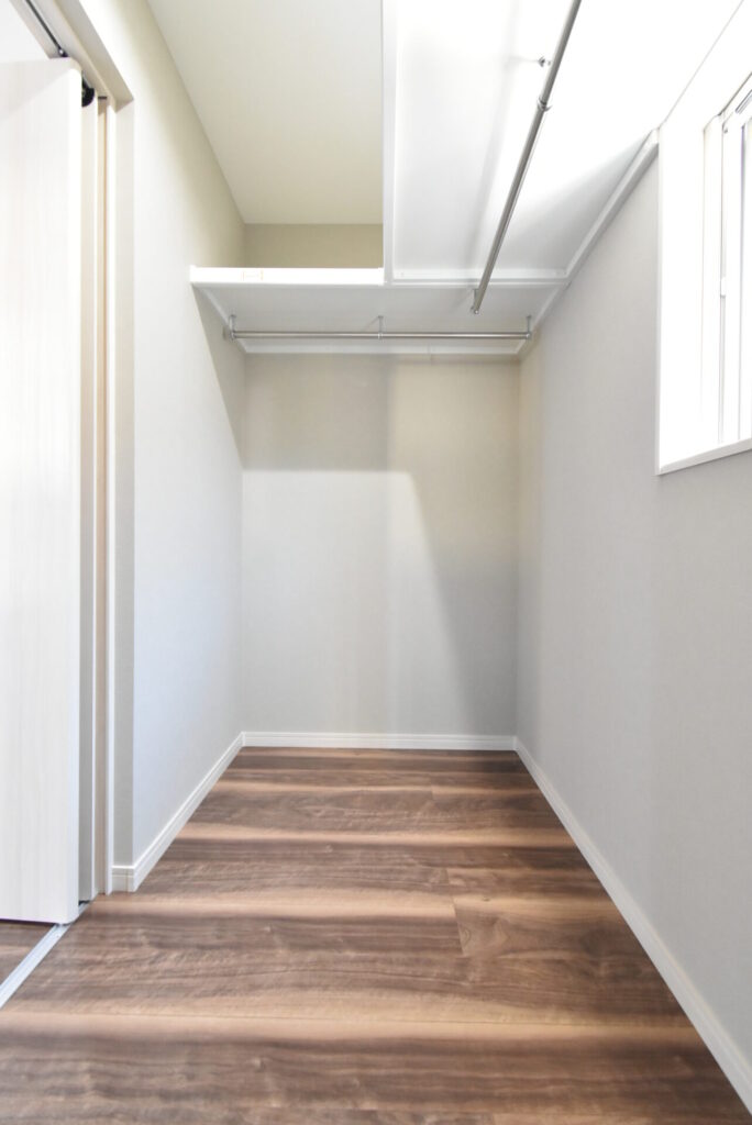 コの字型にハンガーパイプが設置してあり、たくさんの衣類を収めることができます。