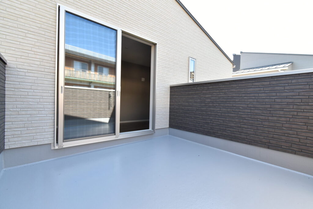 リビング横には、プチテラス。「私ならテラスに、でっかいクリスマスツリーを飾りライトアップさせちゃう☆そしてサンタさんの登場は、ここからがベストだね~!」なんて、スタッフの妄想が止まらないこの間取り。