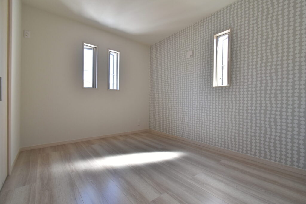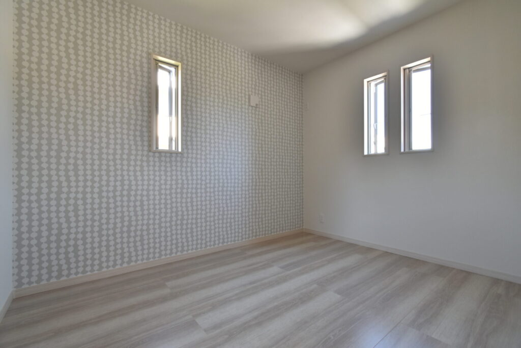 ベッド・机を置ける広さ。可愛い壁紙に子供たちのテンションも上がりそうですね。
