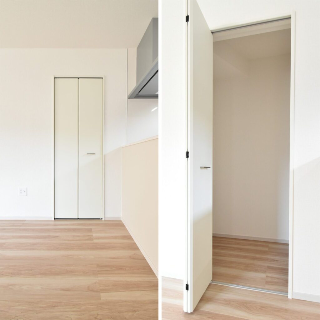 ダイニングには、収納スペースが確保されていました。収納の中に棚を設置すれば、書類や日用品をすっきりと収めることができます。