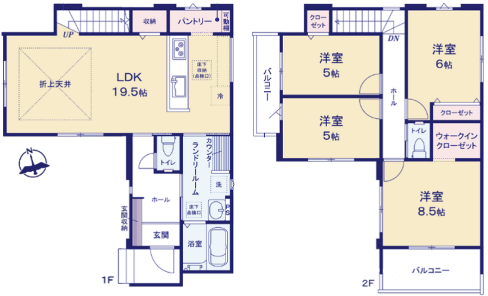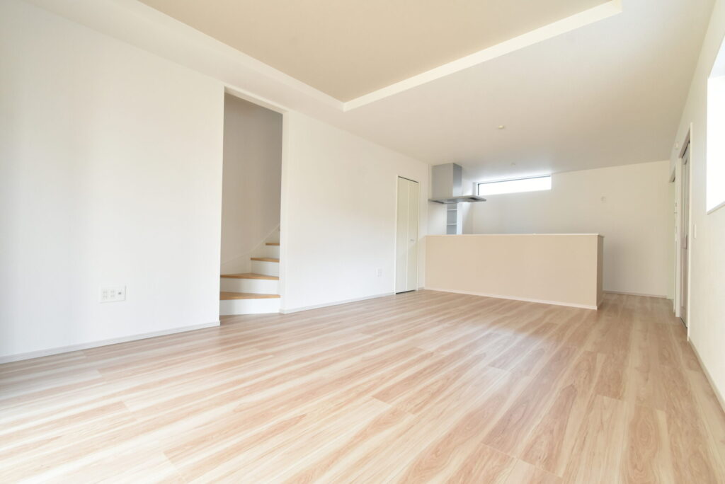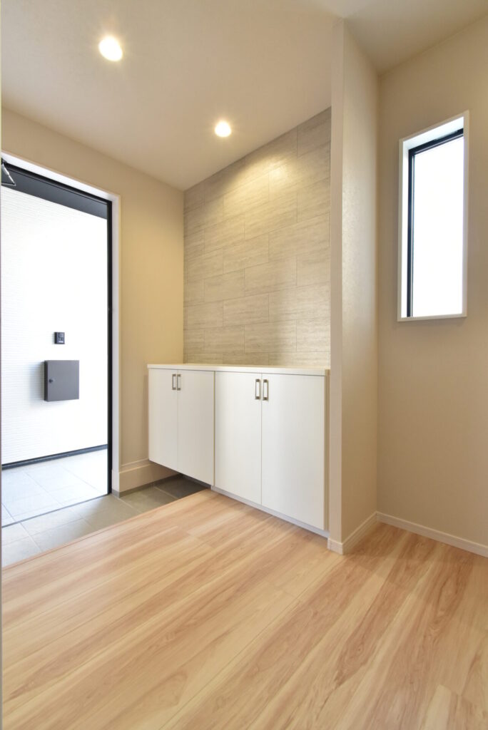 玄関ドアを背にした角度はこちら。買い物帰りは、手を洗い後”ランドリールーム→キッチン”にスムーズに移動ができますよ。左のLDKへ向かう動線を通って2階へ上がりましょう。
