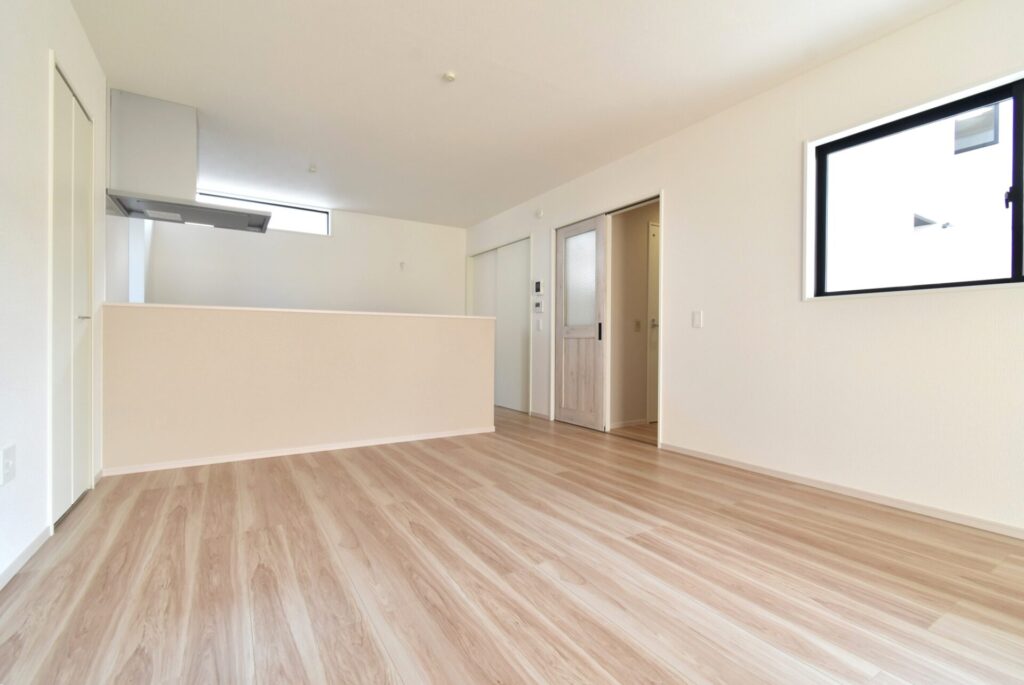 ナチュラルなウッド調のドアを開けると、広~い19.5帖のLDKが登場。