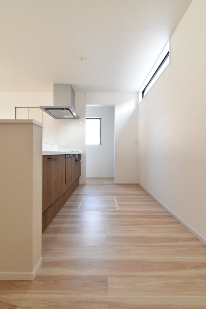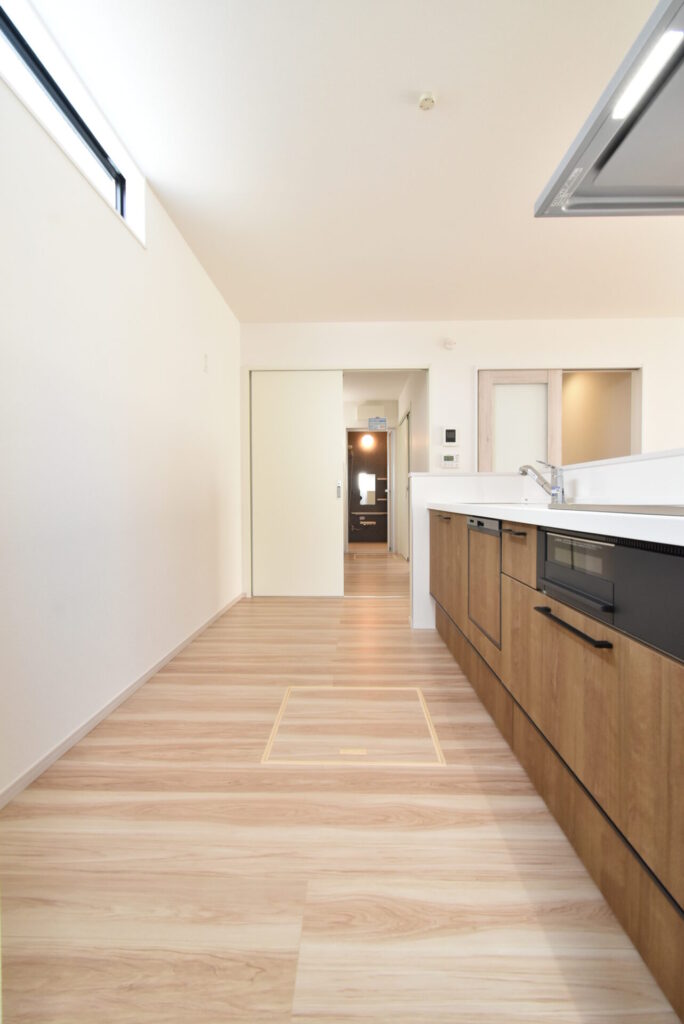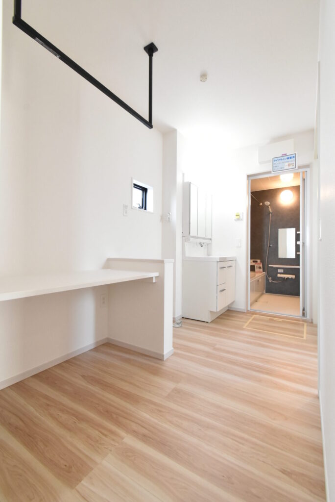 またまた気持ちの良いビューをご覧いただきましょう!”キッチン→ランドリールーム→浴室”がつながる、家事がめっちゃはかどる一直線ビューでございます!!