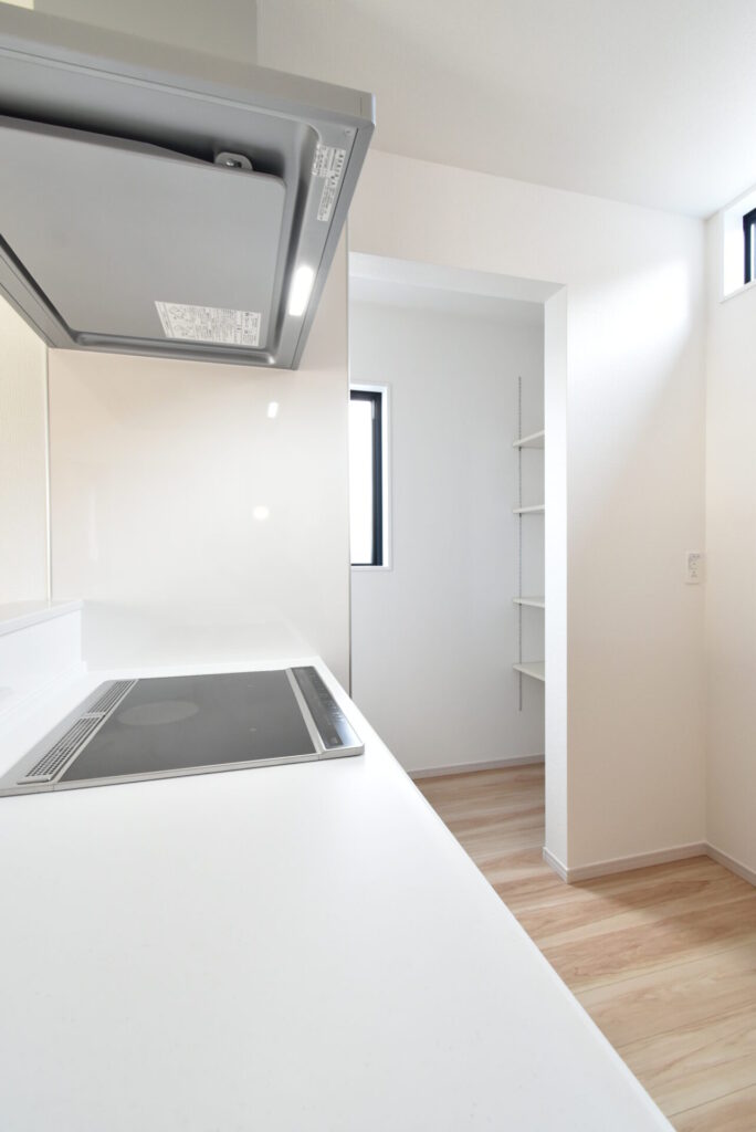 キッチン奥には”あのスペース”がお待ちかねですよ。なんのスペースかもうお察しのいい方は、おわかりですよね~。すでにチラリと見えちゃっています。(笑)