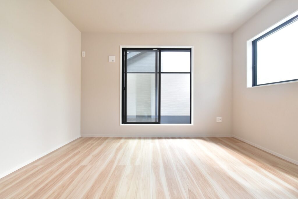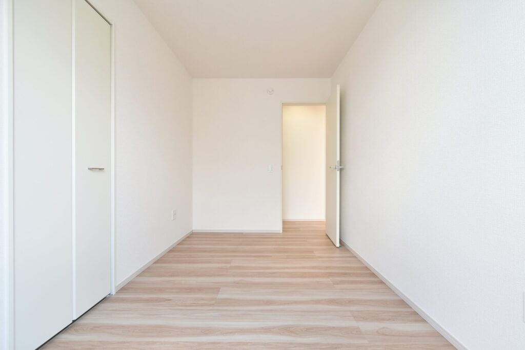 最後にご紹介するお部屋は、日当たりのいい洋室です。クローゼットはなかったので、追加で収納家具を設置すると◎