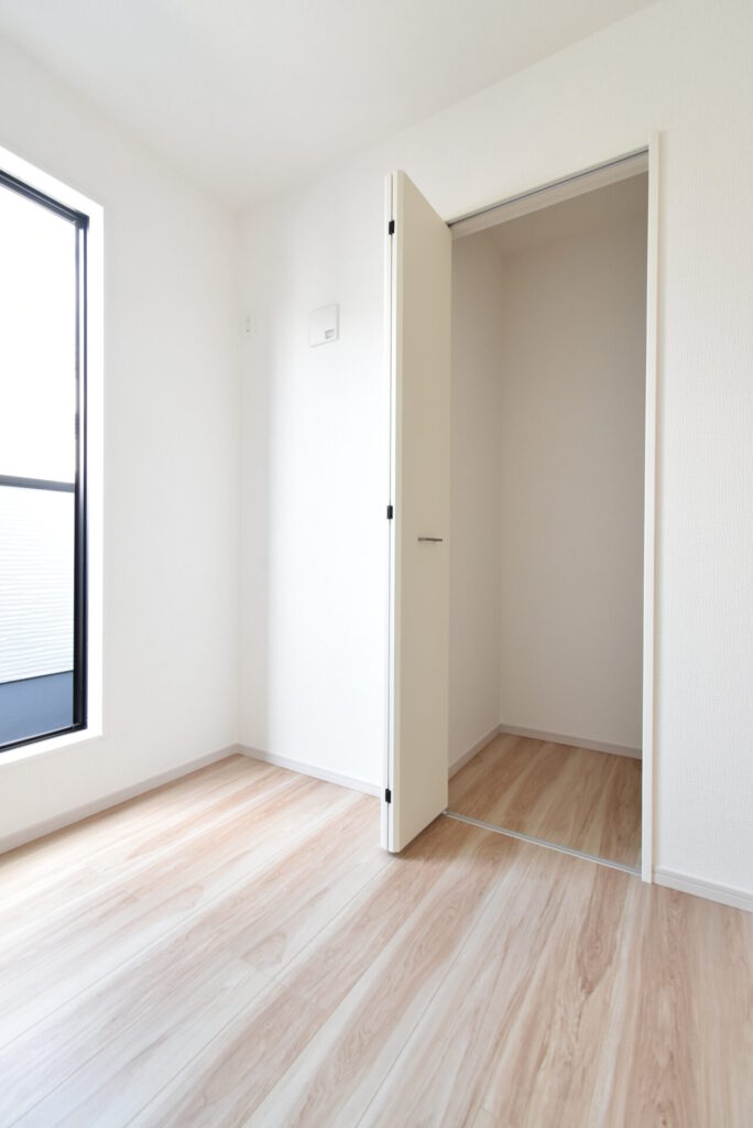 日中は直接日が入りませんが、2面採光で明るい印象の洋室でした。風通しもGood!クローゼットは横に広く、洋服の出し入れがしやすそう。