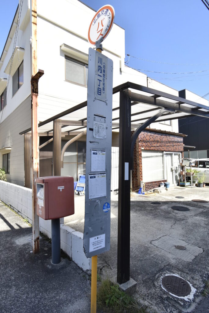 物件の近くには「川内一丁目バス停」(約450m 徒歩6分)もあります。こちらは本数が少ないので、時間に余裕がある時に利用するとよさそうです。