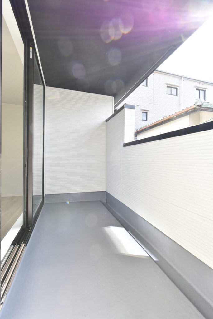 屋根がしっかりとかかったベランダは、天候の急変にも安心。小雨程度なら、衣類をカバーできそうです。日当たりが良く洋服の乾きも良さそうでした。