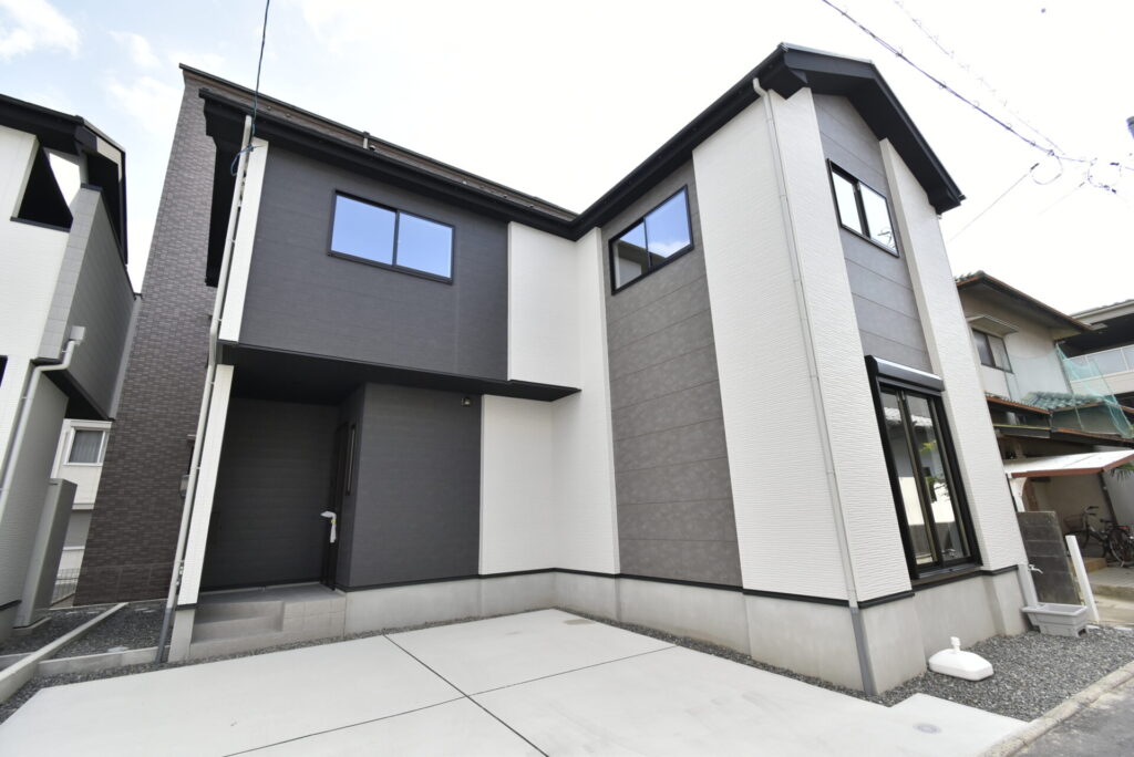 L字の形のお家は、どっしりと大きく見えます。また白×グレーの色味は、周囲の環境に自然と溶け込んでいました。汚れが目立ちにくい点もこの色味のメリットですね。