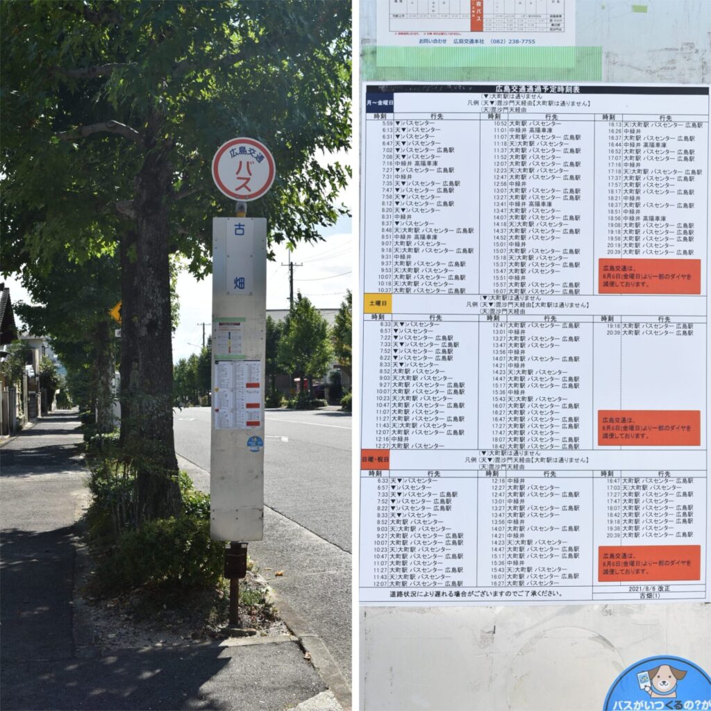 最寄りのバス停は「古畑バス停」(約66m 徒歩1分)。大町駅・広島バスセンター経由で、広島駅まで向かうバスが到着します。本数も多いので、通勤通学にも便利!1時間に1本程度、中緑井に向かうバスも到着しますよ。