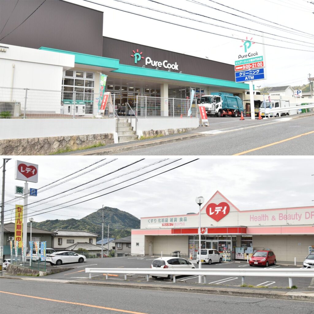 毘沙門台の団地内には、「ピュアークック毘沙門台店」(約900m 徒歩12分)や「くすりのレディ」(約1km 徒歩13分)があります。車を利用すると、物件から約2分で到着します。周辺にはお好み焼き屋さんや和菓子屋さん、酒屋さんがあるので、買い物ついでに訪れてみてもいいですね♪