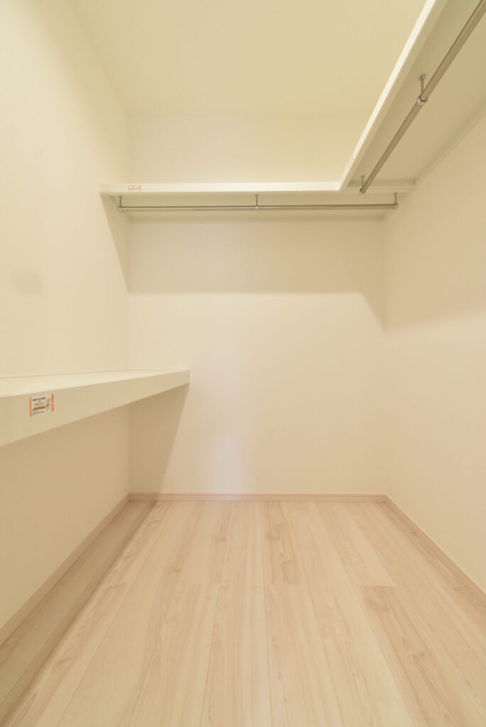 クローゼットにはたっぷり洋服を収めて、奥行きのあるこちらの収納スペースには、キャリーケースやお布団などを収めてもよさそう。