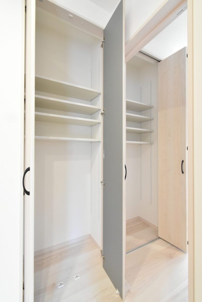 玄関から写真右へ進むと、LDKにたどり着きますよ。LDKの入り口には収納スペースが2か所あったので、チェックしてみましょう!