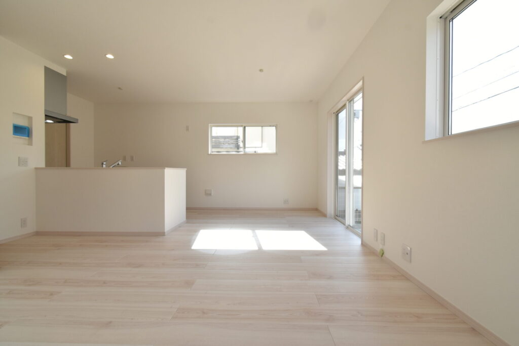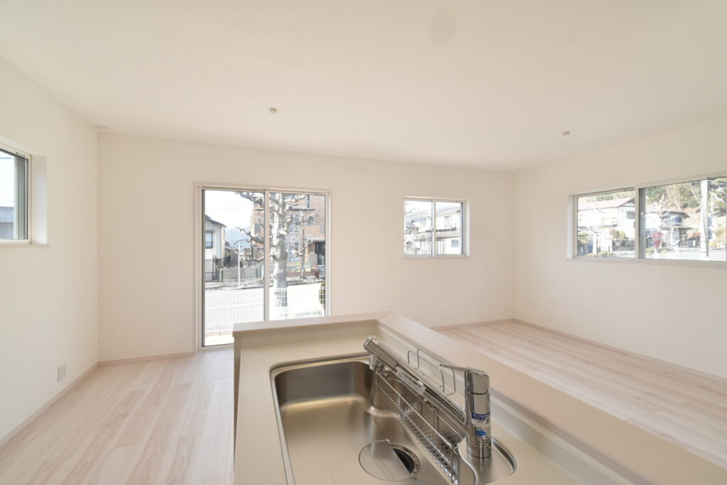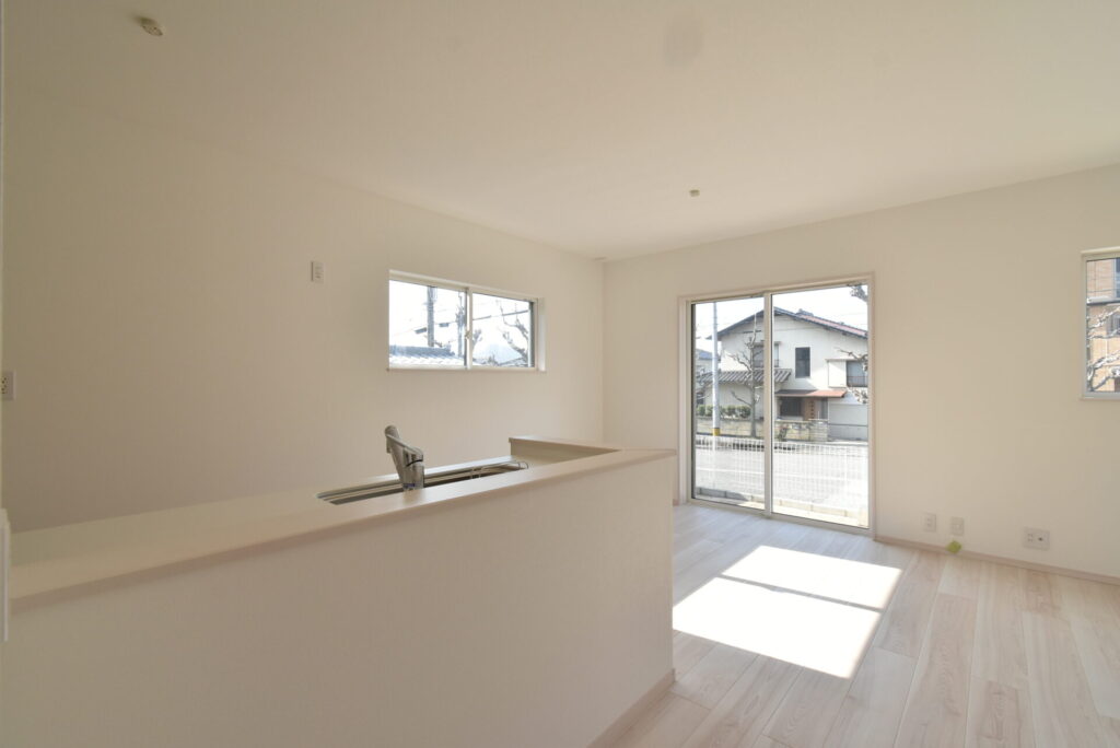 家事をしながらでも、お庭で遊ぶ子どもの様子、窓を開けていれば、駐車スペースで車のメンテナンスをするパパの存在も感じられます。いい距離感でそれぞれがやりたい事をして過ごし、心満たされた状態でみんながLDKに集まれば、家族で過ごす時間は笑顔で満たされること間違いなし!
