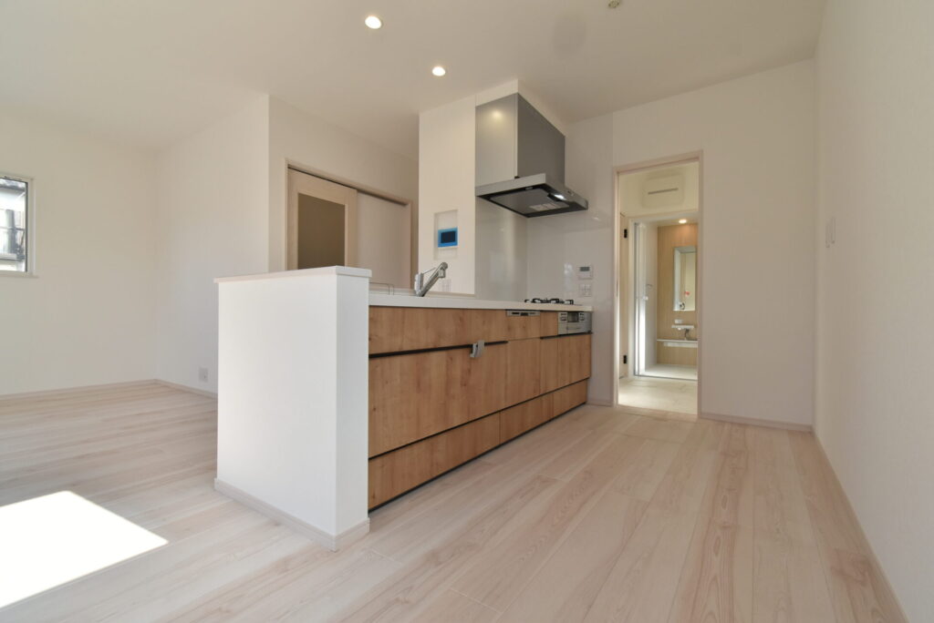 キッチン・ダイニング・お庭が写るワンショットもご覧ください。キッチンに立つママ、お庭でペットと遊ぶ子どもたちを想像できちゃいませんか?素敵な戸建ライフが脳内でどんどん膨らみます♪