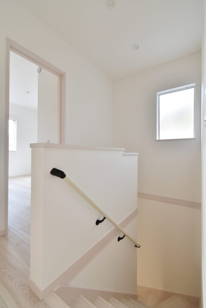 階段手前には、収納スペースが確保されていました。しっかりと奥行きのある収納で、季節の飾り物や季節家電など幅を取るものの収納場所にするとよさそうでした◎
