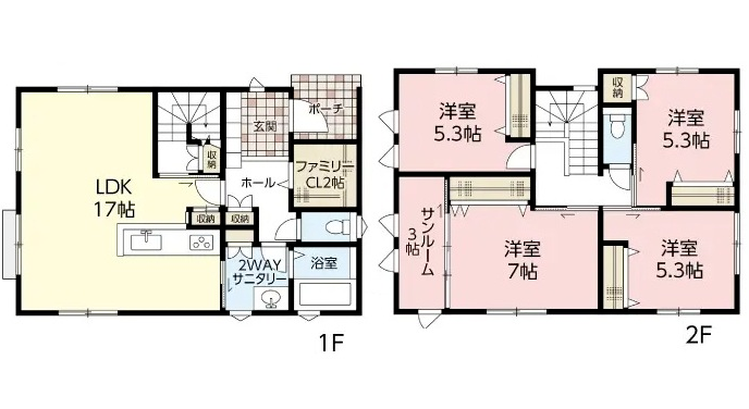 106.11㎡(32.09坪)・4LDK+ファミリークローク+サンルーム+庭