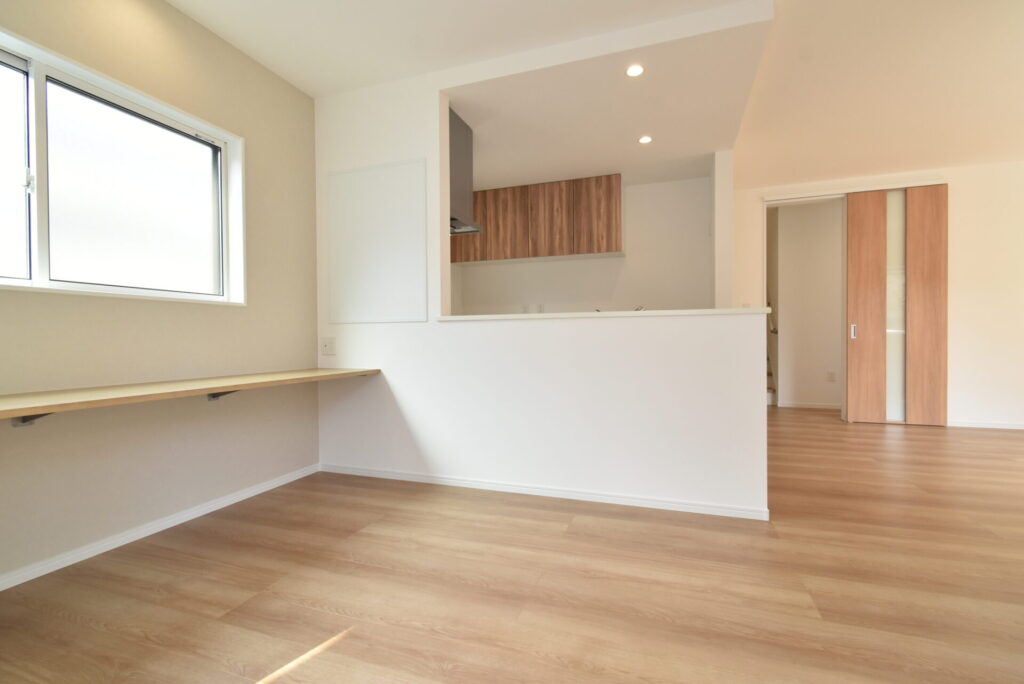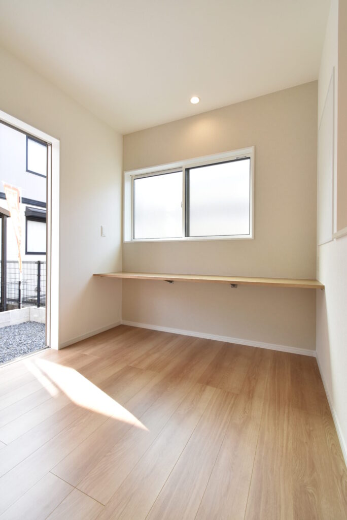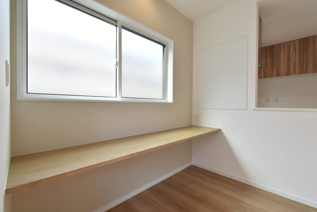 ダイニングには、ちょっとしたパソコン作業や学習に便利なカウンターもありましたよ。カウンターの上にも下にもコンセントがあったので、タブレットを充電したり、プリンターを設置したりも可能です。