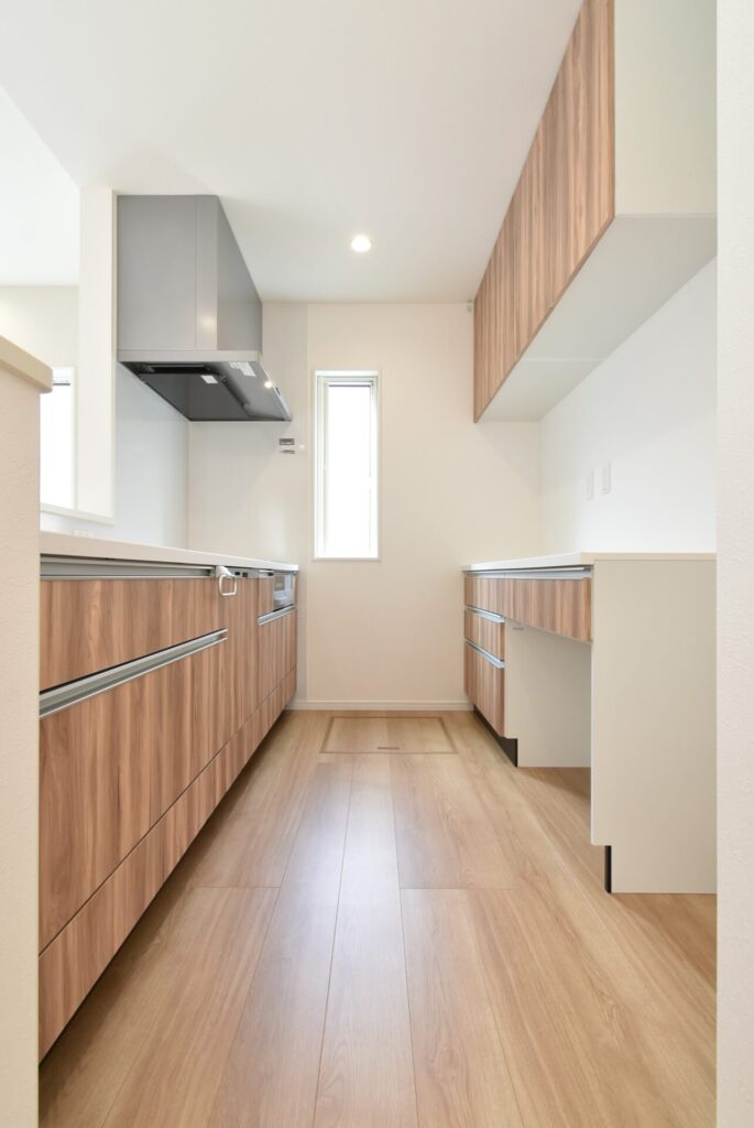 温もりのあるウッド調のキッチン。