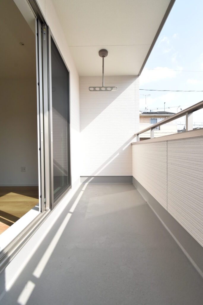 日当たりのいいベランダ。屋根もしっかりとかかっているので、急な雨にも安心です。