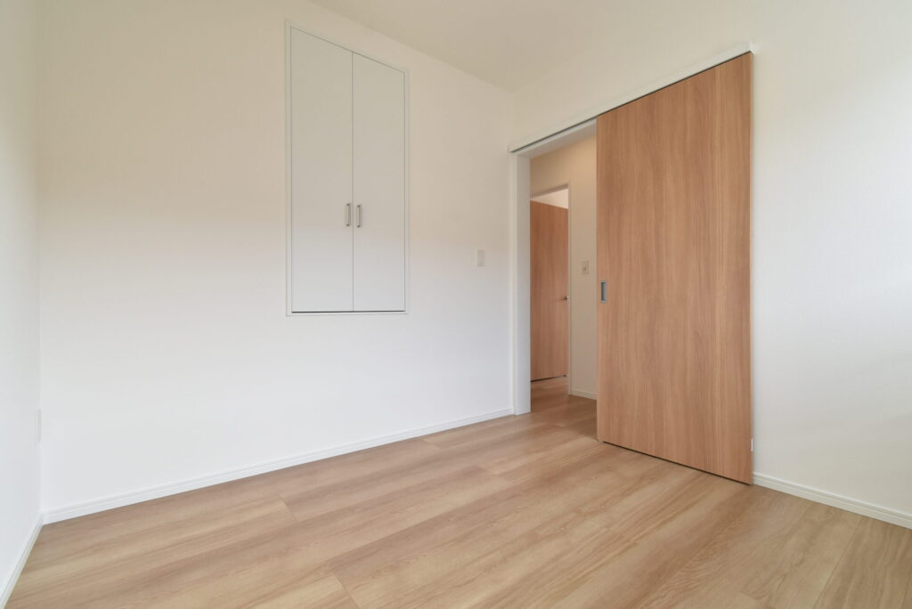 シングルベッドを設置できるサイズ感の洋室。