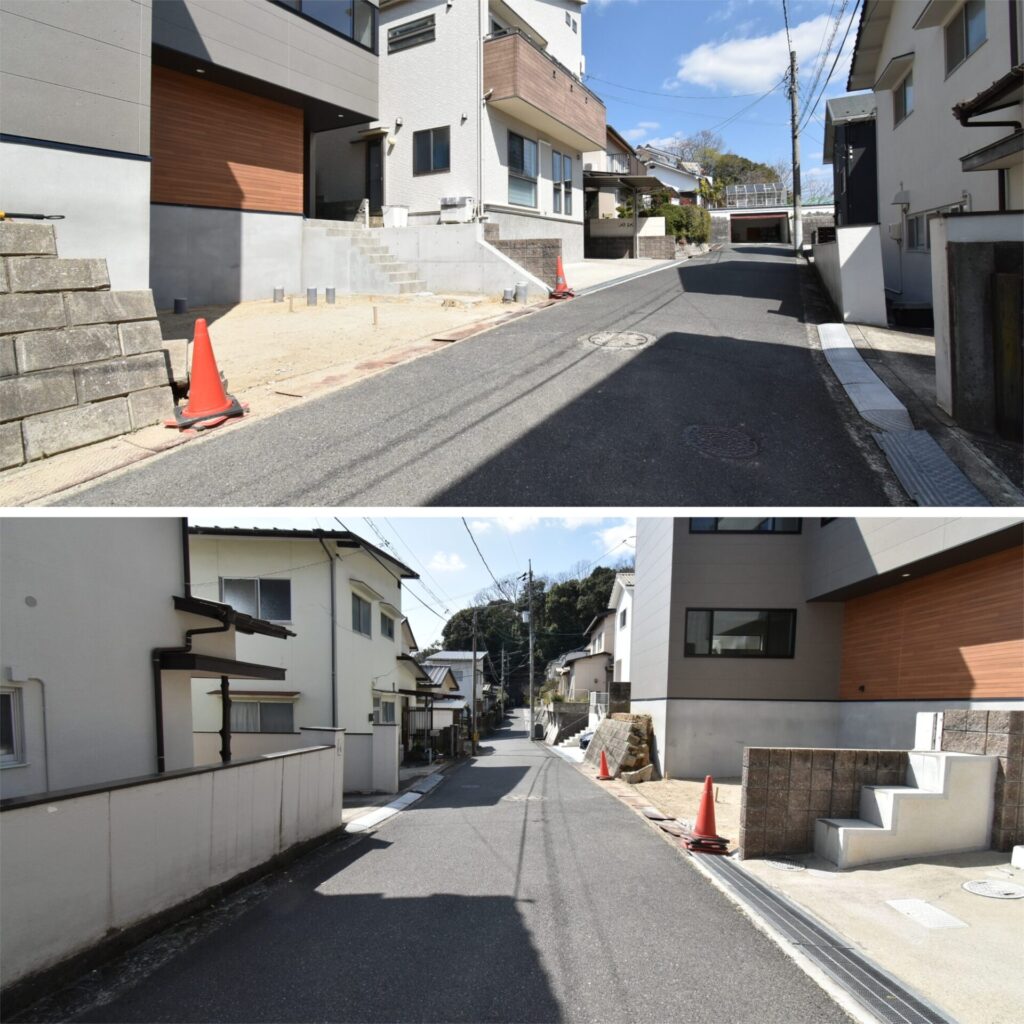 前面道路は、公道約4.2m。交通量も少なく落ち着いて駐車できそうでした。